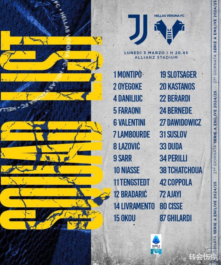 3月4日3:45,意甲联赛第二十七轮最后一场比赛,排名第五的尤文图斯主场迎战排名第十四的维罗纳。